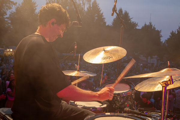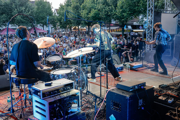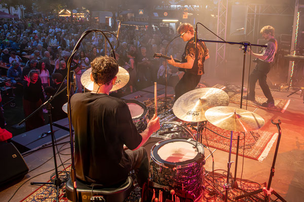 „Mesafeler”, zu Deutsch „Distanzen“, heißt das aktuelle Album von Engin – dem Opener der Woche der kleinen Künste. Dieser Mannheimer Band also, die das türkisch-deutsche Lebensgefühl zu sezieren weiß wie keine andere. Sie zeigt aber auch, dass Distanzen wie geschaffen für Brücken sind. Und so war an diesem Abend keine Kluft zu spüren und schon gar keine Dissonanz zu hören, sondern pure Harmonie, die direkt in die Tanzbeine ging. Ein rauschendes Fest des Miteinanders war es, was wir vom ersten Ton an auf unserem Lieblingsplatz mitten in der Stadt erlebten. Der erfrischend ehrliche Indie-Sound der drei Musiker um den deutsch-türkischen Sänger Engin Devekiran gab den Ton vor. Er war zum Tanzen gemacht.